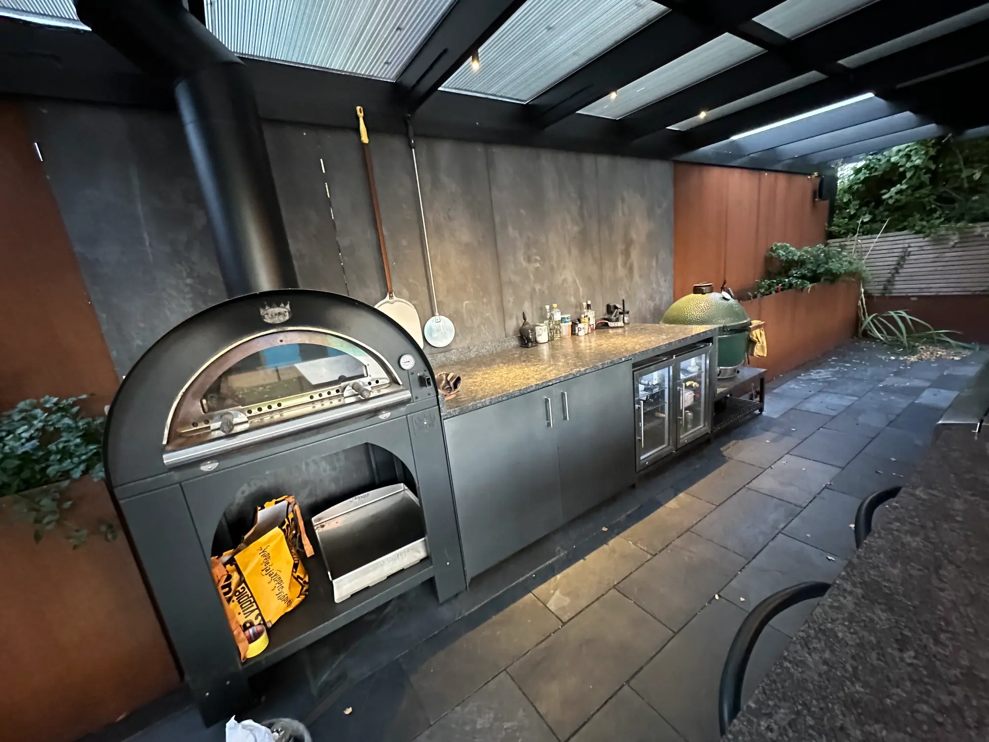 Tillverkat utekök med tillhörande detaljer i cortenstål.